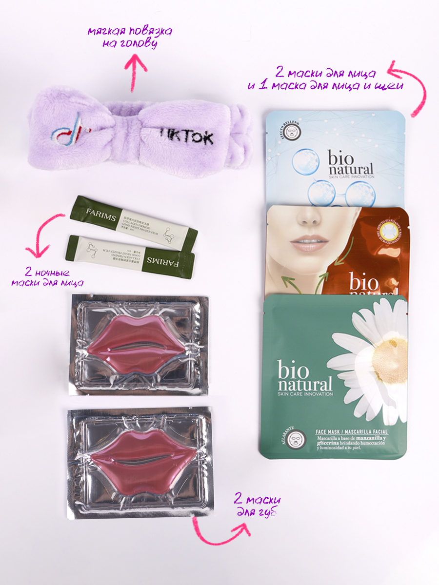 Бьюти-бокс состоит из 7 масок + ПОДАРОК (повязка на голову)